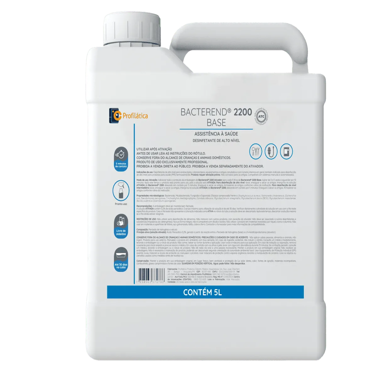 O Bacterend 2200 é um desinfetante de alto nível à base de ácido peracético NV (nova via), desenvolvido com tecnologia avançada para garantir eficácia antimicrobiana superior e excelente compatibilidade com materiais sensíveis.