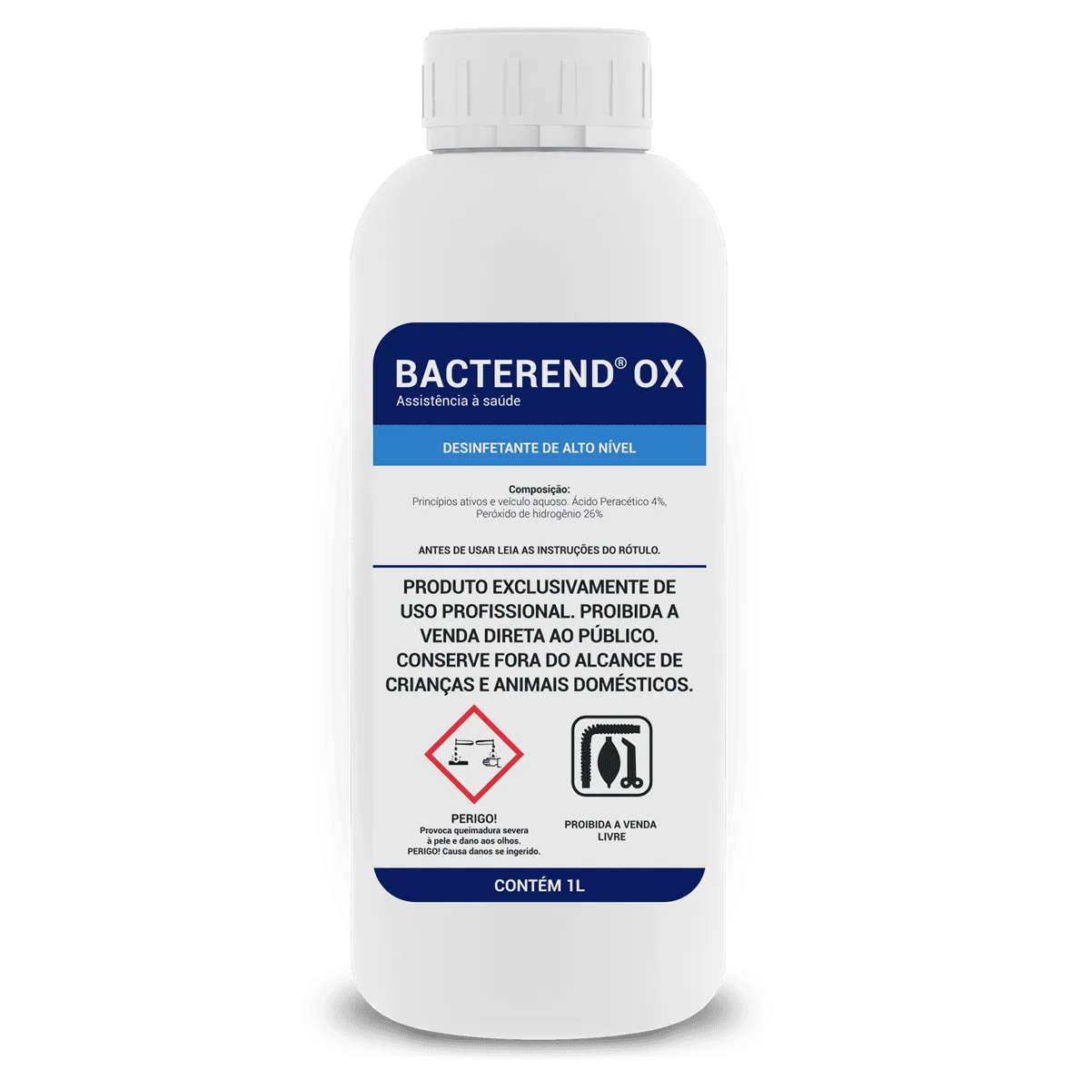 O Bacterend OX é um desinfetante de alto nível à base de ácido peracético em equilíbrio, desenvolvido para oferecer máxima eficácia na desinfecção de artigos, equipamentos e superfícies em hospitais, clínicas e consultórios odontológicos.