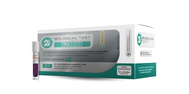 Os Indicadores Biológicos da 2i são utilizados para monitoramento de ciclos de esterilização por peróxido de hidrogênio, entregando resultados em 8 horas em incubadoras de 47 a 62°C. O sistema inclui esporos de Geobacillus stearothermophilus e uma ampola com meio de cultura e indicador de pH, encapsulados em uma ampola de termoplástico.