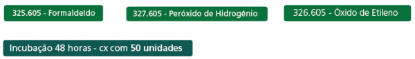 Indicadores biológicos auto-contidos para processos de esterilização em ETO, Formaldeído e Peróxido de Hidrogênico. Incubação tradicional de 48 horas – caixas com 50 unidades.
