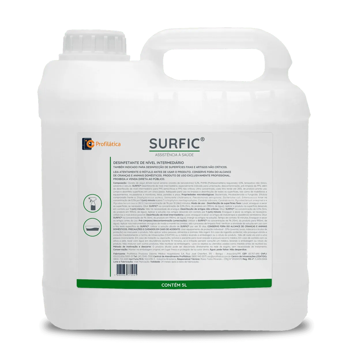 O Surfic, desenvolvido pela Profilática, é um desinfetante de nível intermediário com ação de amplo espectro contra bactérias, fungos, vírus, leveduras e esporos.